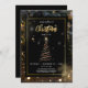 Modern invitation with an abstract Christmas tree. The background is decorated with fir branches and Christmas lights