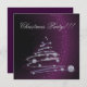 An elegant abstract Christmas Tree with ribbons and balls in shades of grey and sparkling stars on dark purple background. Personalise it with your text. Perfect for your corporate/company/office party.