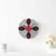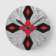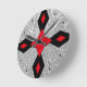 Cool & chic abstract circle chaos modern wall clock in red, white, grey & black.