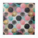This seamless abstract pattern ceramic tile features a lively arrangement of circles in varying sizes and textures over a dreamy gradient background. The circles include textured brush-painted styles in pink and teal, shimmering gold glitter dots, and black circles speckled with white for a starry or confetti-like effect. Set against a vibrant gradient wash of pink, orange, yellow, blue, and green tones, the design is bold, artistic, and full of playful energy—perfect for modern, creative, or celebratory themes.