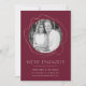 Share the news of your engagement in style with these elegant engagement announcements! The announcement features your engagement photo encircled by faux gold abstract circles on a wine-coloured background. "We're Engaged!" is displayed in white modern lettering with your name and details below.