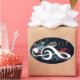White cleft note with music notes and an abstract design. Great for musicians, singers, a gift for a music teacher or anyone who enjoys music.
