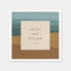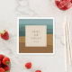 Modern wedding napkins featuring your names and wedding date over an abstract coastal background.