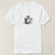 A stylish coffee cup with steam rising, drawn with bold, almost rough brush strokes. It's black and white, with splatters that give it an energetic, worn-out look.