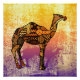 Brighten your wall and your day with this fun original graphic design. The abstract collage of a camel is done in bold shades of gold and plum.
