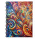 The image features a spiral notebook adorned with colorful swirls, showcasing a vibrant and playful design. The artistic pattern reflects modern and psychedelic art influences, adding an abstract flair to its visual appeal. This motif could serve as an inspiration source in various creative endeavors.