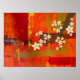 A striking poster featuring a captivating abstract background with vibrant red, orange, and yellow hues. Amidst the colourful backdrop, elegant white flowers bloom, creating a stunning contrast. This poster exudes energy and beauty, perfect for those who appreciate abstract art and the elegance of white flowers. Let this unique combination of colours and flowers add a touch of artistic charm to your decor, creating a captivating focal point in any space.