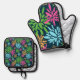 Abstract Colourful Fireworks Flowers Oven Mitt & Pot Holder Set