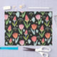 Cute red and pink tulips seamless pattern on black background. Customisable tissue paper template