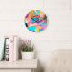 Abstract Colourful Geometric Watercolor Background Large Clock