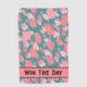 Get a little motivation with this inspirational quote colourful golf towel. "Win The Day" on the front in black vintage modern font that has a bit of a Gatsby vibe. But you can also change the text out for a different quick reminder or name or something like 'Fore!' if you prefer. The brushstroke pattern features a mix of calming yet vibrant hues with blush or baby pink, flamingo pink, turquoise, and a tiny subtle hint of purple. Contrasting with black stroke and font. Colourful Abstract Motivational Golf Towel