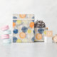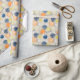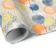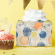 Abstract colourful polka dot pattern. Large textured blue, orange peas and black small dots on a beige background.