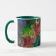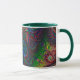 Abstract colourful mysterious red, green, teal, blue, yellow and magenta cosmic fractal spiral pattern.