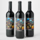 Abstract Colourful Swirl Tree Landscape Nature Wine Label
