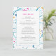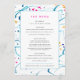Abstract colourful tropical shallow sea waves event or wedding menu. Perfect for a minimal or modern beach art tropical or coastal sea wedding or sit down four course dining event. Edit this four course menu with your own meal options. Other matching items available. Original abstract art tropical waves in aqua teal, pink, orange and white painted with ink and gouache paint and designed by Sarah Trett for www.mylittleedenweddings.com