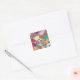 A confetti tapestry of colours form this abstract design. Background in silver purple glitter.