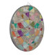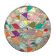 A confetti tapestry of colours form this abstract design. Background in pale gold foil.