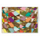 A confetti tapestry of colours form this abstract design. Background in gold foil.
