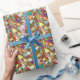 A confetti tapestry of colours form this abstract design. Background in gold foil.