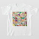 A confetti tapestry of colours form this abstract design. Background in pale gold foil.