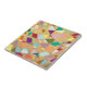 A confetti tapestry of colours form this abstract design. Background textured sun burst pattern.