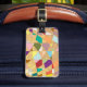 I was happy with the acrylic tag but it came with a thin leather strap to attach the tag to luggage (like a cat collar). I replaced the strap with a metal ring off of a key ring as the leather strap would come undone or break easily as luggage is sometimes handled without much care by airlines. Printing is great. Colours and positioning of the design I put on the tag were perfect. Very pleased.