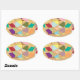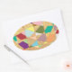 A confetti tapestry of colours form this abstract design. Background textured sun burst pattern.