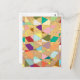 A confetti tapestry of colours form this abstract design. Background textured sun burst pattern.