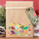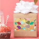 A confetti tapestry of colours form this abstract design. Background textured sun burst pattern.