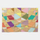 A confetti tapestry of colours form this abstract design. Background textured sun burst pattern.