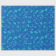 Wrapping paper in a modern geometric, abstract constellation / starry sky print in soft shades of aqua and pale blue on a deep cobalt blue background