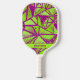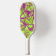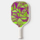 Cool abstract design features a sharp colourful abstract pattern in lime green & purple. Customise with name or initials in coordinating font colour with the simple to use template. Easily customise font type using the Zazzle design tool. The design repeats on the reverse side. Stand out on the court with this perfect unique pickleball gift for him or her.
