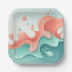 Abstract Coral & Teal Fluid Art Coffee Paper Plate