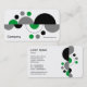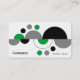 A business/profile card template with an abstract motif made up of crescent shapes and circular spots running horizontally. Company name and business type on the front. Name and all other contact on the reverse with a vertical version of the motif on the right. Ready to be customised with your details, suitable for many types of business.
