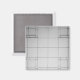 This design features an illustration in various shades of gray that shows squares building up into cubes.