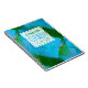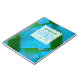 Abstract background with superposed coloured squares (colours: turquoise blue and green) and funny customisable lettering on half-transparent white tag. You can easily change text (font, colour,size and position) by clicking the customise button. Graduation guest book.