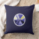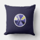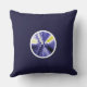 Modern dark blue throw pillow with abstract fractal art in a white round frame.