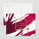 Deep, ruby red painted brushstrokes create an abstract backdrop on this designer postcard template. Your name or business name is displayed in a faux gold box on the front for a modern aesthetic. A fun, eye-catching postcard perfect for sending thank you's to customers, for personal greetings, or use for announcements. Art and design © 1201AM Design Studio | www.1201am.com