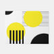 Abstract design illustration with geometrical (circles and stripes) shapes decoration in yellow and black colours on white background.