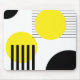 Abstract design illustration with geometrical (circles and stripes) shapes decoration in yellow and black colours on white background.