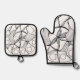 Abstract design of flowers and butterflies oven mitt & pot holder set
