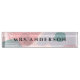 A modern desk nameplate personalised with a black block font and adorned with abstract design. Perfect for the teacher in your life.