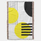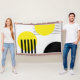 Abstract design illustration with geometrical (circles and stripes) shapes decoration in yellow and black colours on white background.