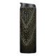 Command attention with this Halftone Dot thermal tumbler, featuring a mesmerizing, tech-inspired design. The pattern uses a gradient of golden-yellow dots against a deep black background to create a stunning 3D optical illusion. The symmetrical, arched patterns mimic a futuristic, digital "matrix" or luxury mesh aesthetic.