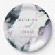 WEDDING PARTY PAPER PLATES | Modern smokey amethyst and dusty blue cyan abstract wedding motif. Moody and ethereal , this beautiful hand painted watercolor illustration in shades of deep cyan blue and shades of dusty purple with gold fleck highlights has the feel of a deep Ocean Amethyst gem geode - Hand written script calligraphy is combined with a minimalist, contemporary style font. A trendy and modern look for all seasons. This is part of a wedding stationery collection with matching wedding accessories. © WhimsicalArtwork created for the BarefootBride™