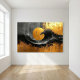 Our painting mesmerises with its abstract interplay of black and gold brushstrokes, softened by grey washes. This dynamic composition exudes luxury and elegance, blending contemporary style with opulence in a captivating, fluid design.