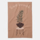 Abstract Expressionism Terracotta Palm Leaf & Vase dish kitchen towel - Earth Tone colours of tan, brown, and terracotta with a lovely Bohemian vibe. The design is a silhouette of the table, vase and leaf. You can personalise the towel to include your own name, your business or a friend's name. These dish towels are so awesome. The colours are vibrant and they are hard wearing and look great as a decor item, place mat or as a dish towel!