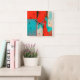 Abstract Expressionist Art Painting Red Turquoise Square Wall Clock