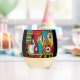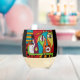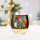 A fun piece of original art showing an abstract character holding a wine glass while balancing a wine bottle. This colorful and eye-catching glass is meant to be fun and is sure to add a bit of interest to your happy hour event. Have fun with art on functional pieces created by the artist/designer MyOtherSide.