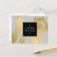 Coordinates with the Abstract Faux Gold Brushstrokes on Grey Business Card Template and office supplies by 1201AM. This design features a faux gold background of painterly brushstrokes with a black plaque overlay to hold your name or business name. Set on a soft grey for a beautifully contrasted motif. An eye-catching customisable postcard design for interior designers, salons, makeup artists, style bloggers, boutiques and more. © 1201AM CREATIVE